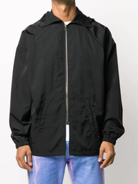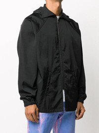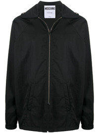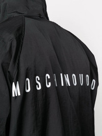 logo print windbreaker No bad weather can put you down. Decorated with a logo print to the rear, this hooded windbreaker from Moschino has got you covered and ready to go. For cool guys only. Highlights - Black/white - Drawstring hood - Spread collar - Front zip fastening - Long raglan sleeves - Elasticated cuffs - Logo print to the rear - Two front slit pockets Made in Italy Composition Polyamide 100% SIZE & FIT Model measurements Height 6 ft 1 in(1.85 m) Bust/Chest 37.79 in(96 cm) Hips 37.4 in(95 cm) Waist 30.7 in(78 cm) Washing instructions Hand Wash