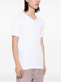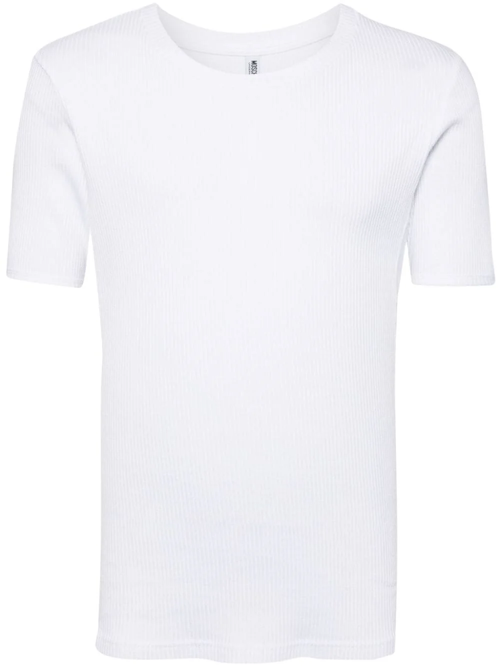 logo-tape ribbed T-shirt Highlights - White - Cotton blend - Stretch-design - Logo-tape detailing - Ribbed knit - Crew neck - Short sleeves - Straight hem Imported Composition Cotton 49%, Modal 49%, Elastane 2% SIZE & FIT Model measurements Height 6 ft 2 in(1.87 m) Bust/Chest 33.07 in(84 cm) Hips 35.43 in(90 cm) Waist 26.77 in(68 cm) FittingInformation Designed for a slim fit, offering a comfortable fit that sits just away from the body Made from a midweight stretch fabric, this piece offers elasticity and flexibility when worn