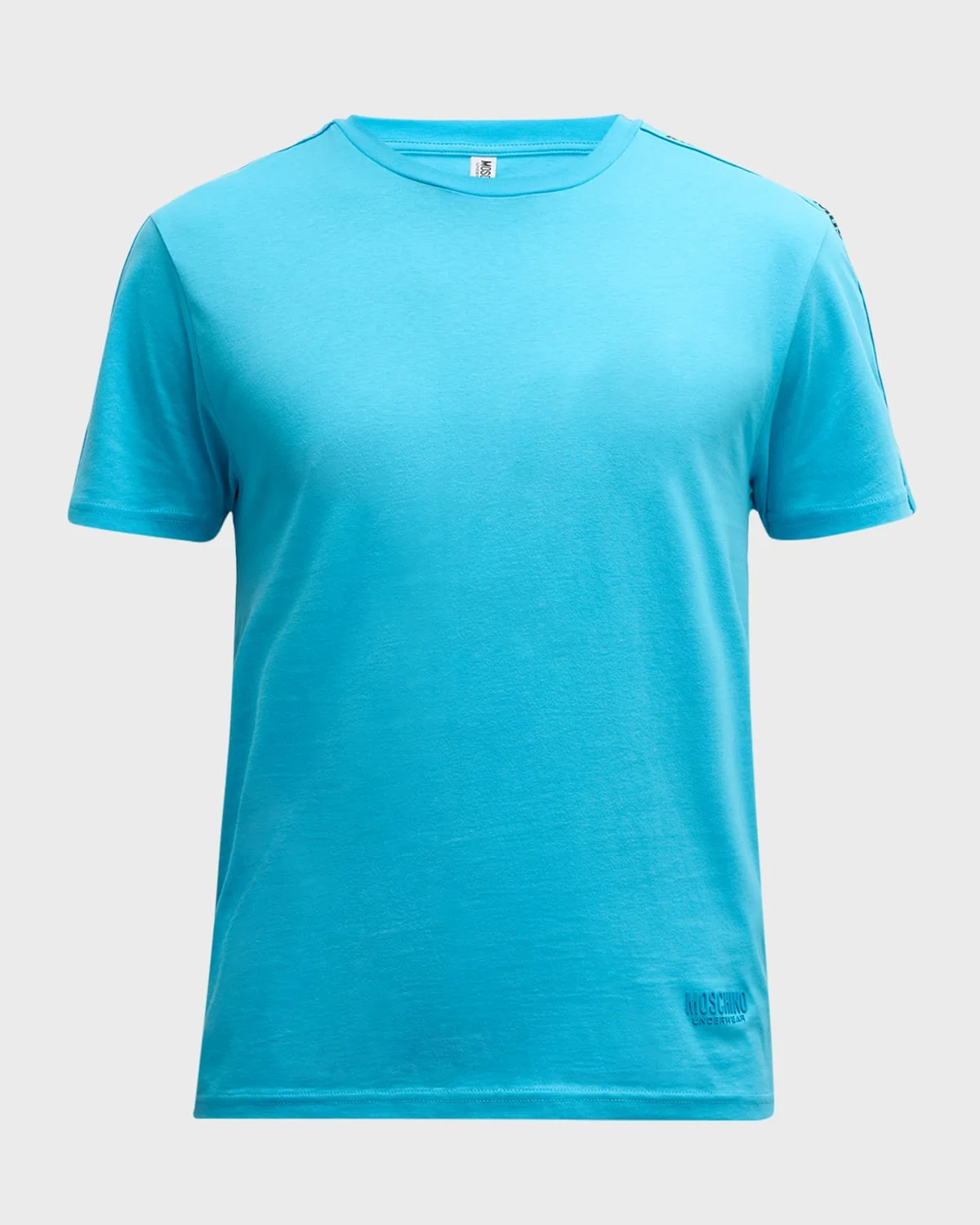 - Moschino T-shirt with shoulder taping - Crew neckline - Short sleeves - Pullover style - Cotton - Unlined - Made in Italy - Model is 6'1"/185cm.