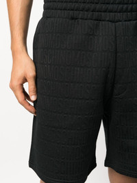 monogram-jacquard elasticated track shorts Highlights - Jet black - Monogram jacquard - Elasticated waistband - Two side slash pockets - Two rear patch pockets - Wide leg - Knee-length Made in Italy Composition Polyester 60%, Cotton 40% SIZE & FIT Model measurements Height 6 ft 1 in(1.86 m) Bust/Chest 37.4 in(95 cm) Hips 36.22 in(92 cm) Waist 29.52 in(75 cm) FittingInformation Designed for a straight-leg fit, offering an unrestricted and comfortable fit over the leg The elasticated waist allows for a comfortable fit Made from a midweight non-stretch fabric, this piece offers minimal elasticity when worn This piece fits true to size – take your usual size Washing instructions Hand Wash