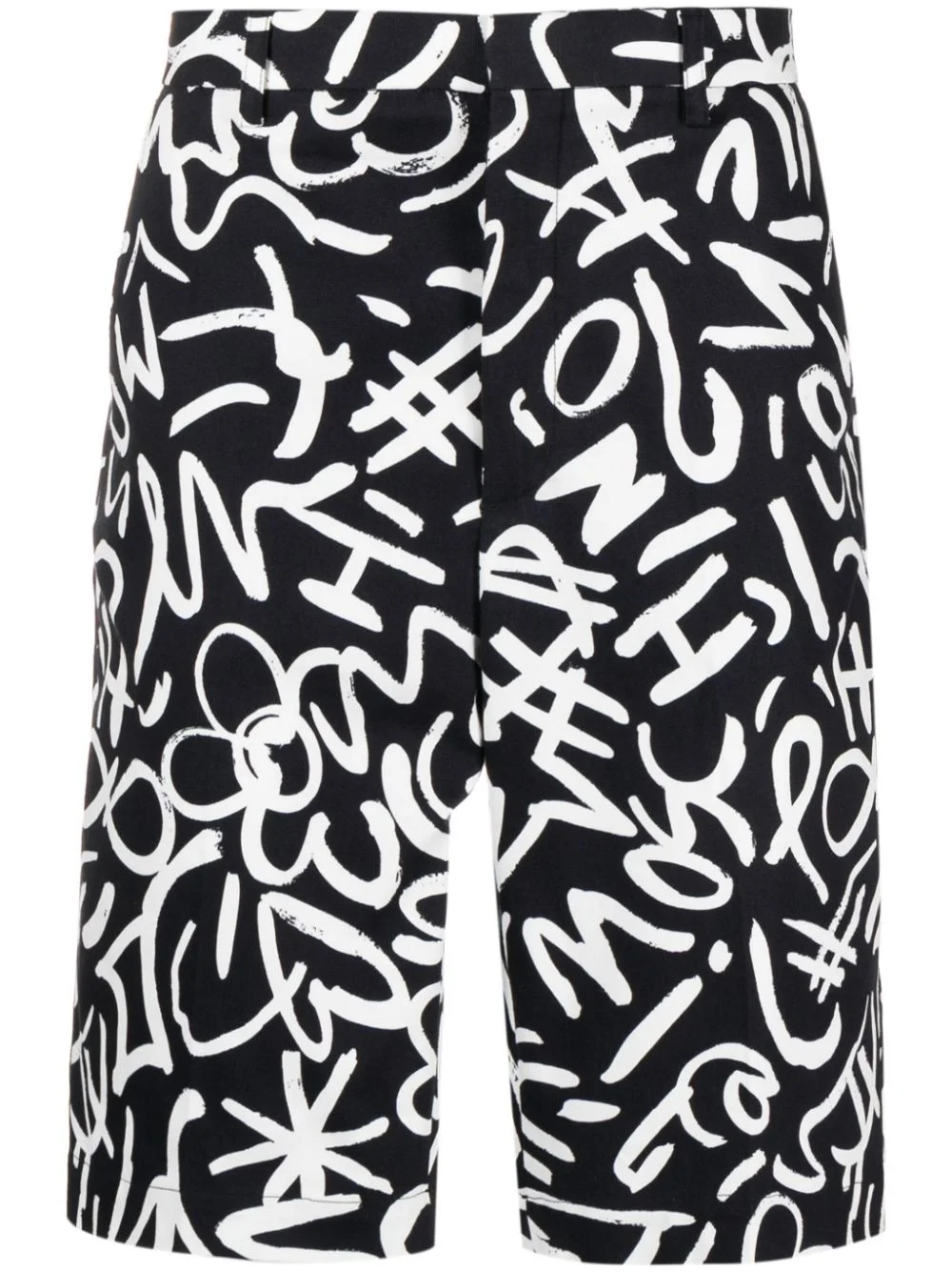 monogram-print chino shorts Highlights - Black/white - Stretch-cotton - Monogram pattern - Belt loops - Concealed front fastening - Straight leg - Two side slit pockets - Two rear welt pockets - Straight hem - Knee-length Made in Italy Composition Lining: Acetate 60%, Cupro 40% Outer: Cotton 97%, Elastane 3% SIZE & FIT Model measurements Height 6 ft 2 in(1.88 m) Bust/Chest 35.03 in(89 cm) Hips 35.82 in(91 cm) Waist 27.95 in(71 cm) FittingInformation Designed for a regular fit, offering an even fit over the leg Made from a midweight stretch fabric, this piece offers elasticity and flexibility when worn This piece fits true to size – take your usual size Washing instructions Dry Clean Only