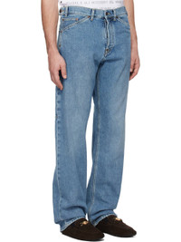 Non-stretch denim jeans. Fading and subtle distressing throughout. · Belt loops · Button fastenings at waistband · Five-pocket styling · Zip fly · Leather logo patch at back waistband · Patch pocket at back · Logo-engraved bronze-tone hardware · Contrast stitching in tan Supplier color: Blue Body: 100% cotton. Lining: 65% polyester, 35% cotton. Made in Italy 251720M186000