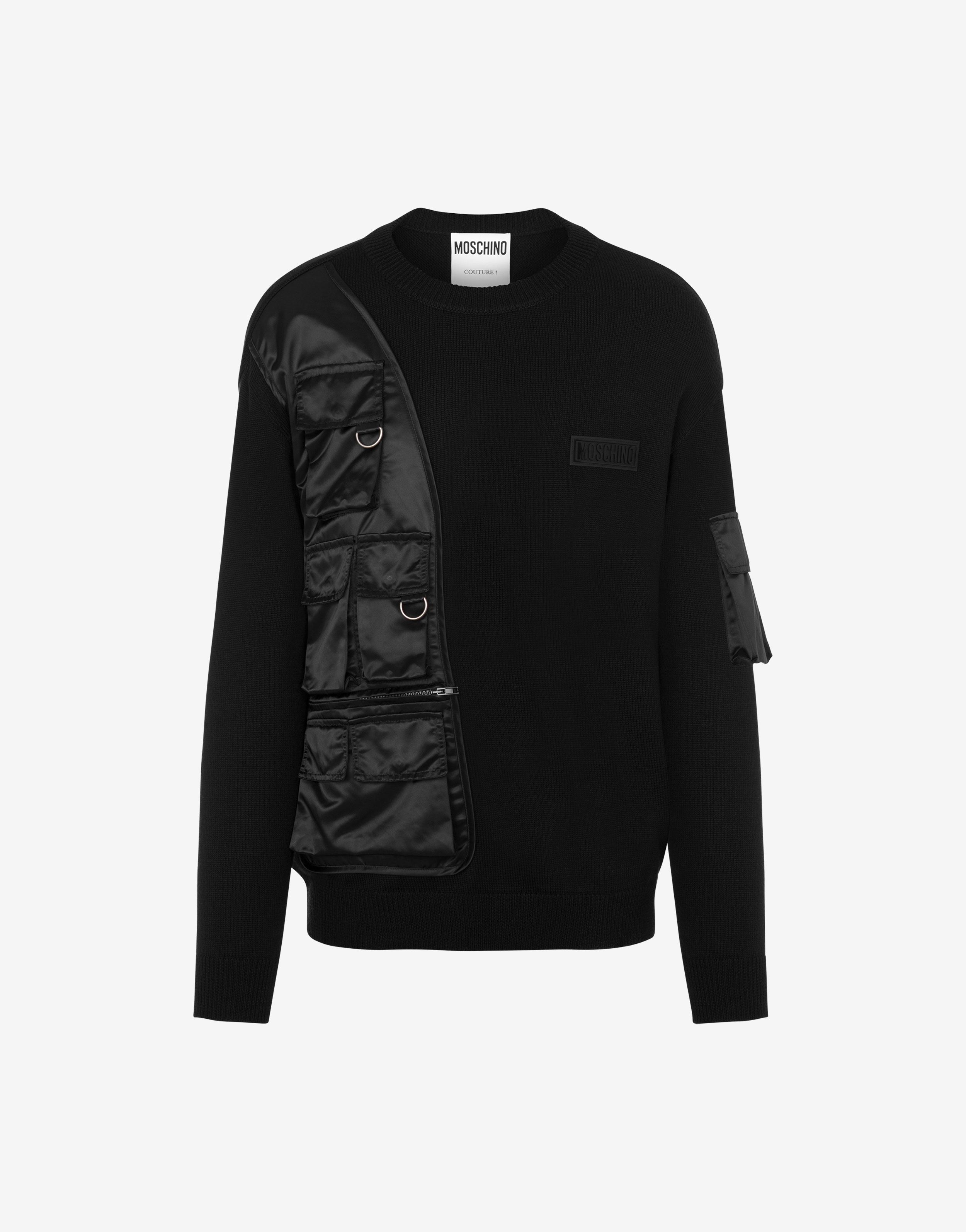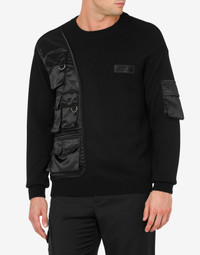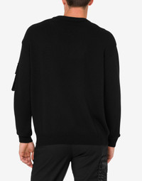Extrafine merino wool jumper with nylon pockets and rubberised logo on the front. - Regular fit - Metal D-shaped rings - Crew neck - Front pockets with press studs and zips - Pocket on the sleeve with press stud Fabric:100% Pure wool Code: AEF241ZR091020000555 FIT - Regular fit - Model bust size : 103 - Model height : 185 cm - Model Hips : 104 cm - Model size : 48 - Model waist : 84 cm