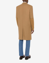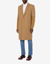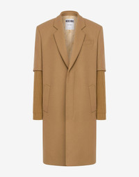 WOOL AND CASHMERE CLOTH SINGLE-BREASTED COAT WITH RIBBED KNIT SLEEVES. REGULAR FIT RIBBED KNIT INSERTS FRONT POCKET TWO SIDE POCKETS PADDED SHOULDERS REAR SLIT BRANDED LINING FABRIC: 5% CASHMERE, 20% POLYAMIDE, 75% PURE WOOL LINING: 100% VISCOSE CODE: AEF242ZR060470114085