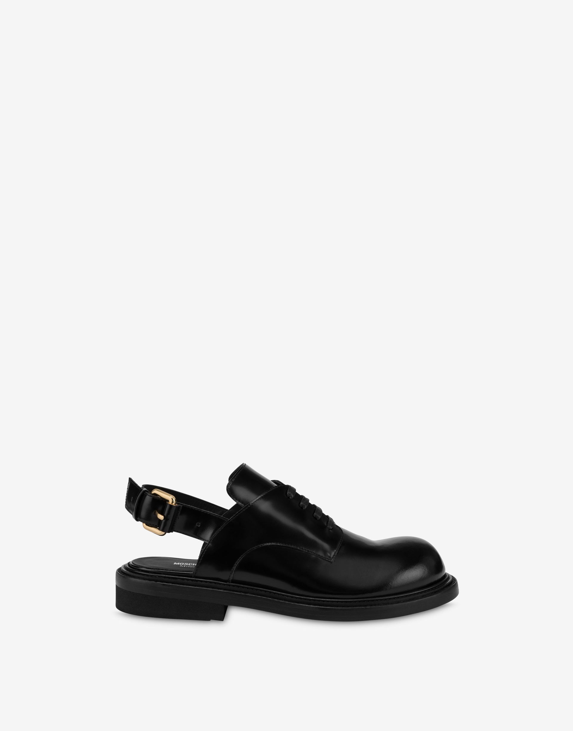 ABRASIVE CALF LEATHER CLOGS, INSPIRED BY A DERBY-STYLE OPEN BACK. THE DOUBLE-WELT SOLE SHOWCASES THE BRAND'S CONSISTENT FOCUS ON QUALITY AND CRAFTSMANSHIP. THE MODEL FEATURES A GENEROUS LAYER OF PADDING, OFFERING EXCEPTIONAL COMFORT AND SUPPORT WITHOUT SACRIFICING STYLE. ADJUSTABLE METAL BUCKLE STRAP FRONT LACES LEATHER LINING 40 MM HEEL LEATHER OUTSOLE BOTTOM: 100% CALFSKIN LINING: 100% CALFSKIN UPPER: 100% CALFSKIN CODE: POLMB10664C0MGB0000 FIT HEEL HEIGHT: 4 CM