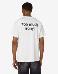 THE FALL/WINTER 2025 COLLECTION FEATURES THE ORGANIC COTTON JERSEY T-SHIRT WITH ARCHIVAL PRINT AND SLOGAN. PRODUCT DETAILS REGULAR FIT - LOGO PRINT ON SLEEVE - SHORT SLEEVES FABRIC: 100% COTTON SKU: AEF252ZZV070252411001 FITTING & DIMENSIONS - MODEL HEIGHT: 188 CM - MODEL BUST: 92 CM - MODEL WAIST: 73 CM - MODEL HIPS: 92 CM - MODEL SIZE: 40
