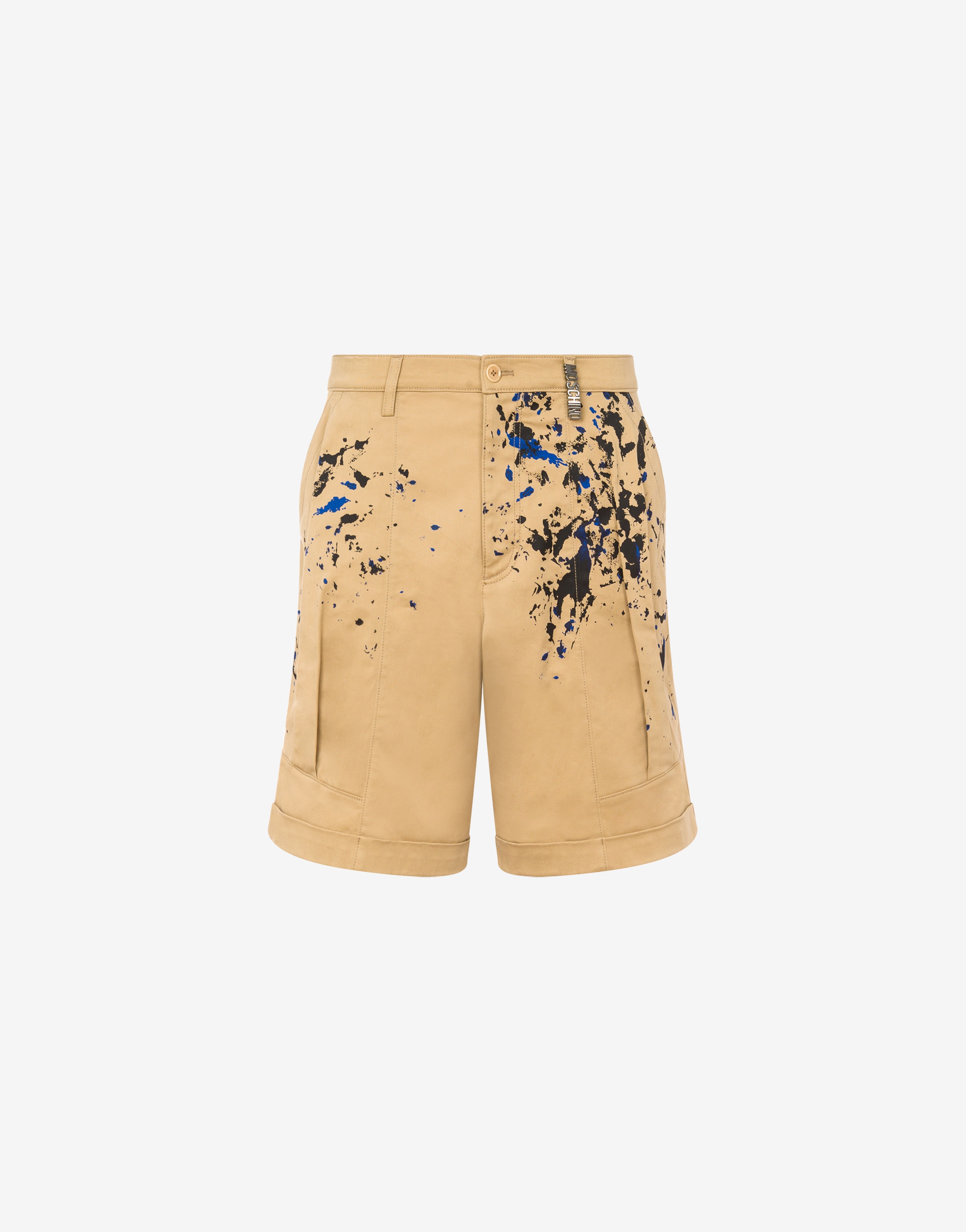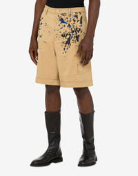 Stretch cotton gabardine Bermuda shorts with hand-painted effect print and logo lettering on the belt loop. - Regular fit - Metal logo lettering - Two slant pockets - Darts on the front - Belt loop detail at the waist - Two back pockets - Cuffed hem - Fastening on the front with covered zip and button Fabric:98% Cotton, 2% Elastan Code: AEF241ZR032120211148 FIT - Regular fit - Model bust size : 103 - Model height : 185 cm - Model Hips : 104 cm - Model size : 48 - Model waist : 84 cm