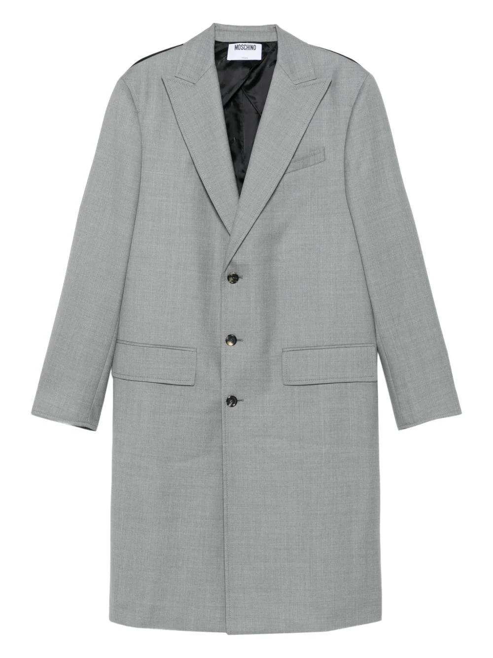 panelled coat Highlights - Grey - Black panel - Button fastening - Long sleeves - Belted back - Straight hem Made in Italy Composition Outer: Viscose 100%, Virgin Wool 100% Lining: Cotton 100%, Acetate 60%, Cupro 40%