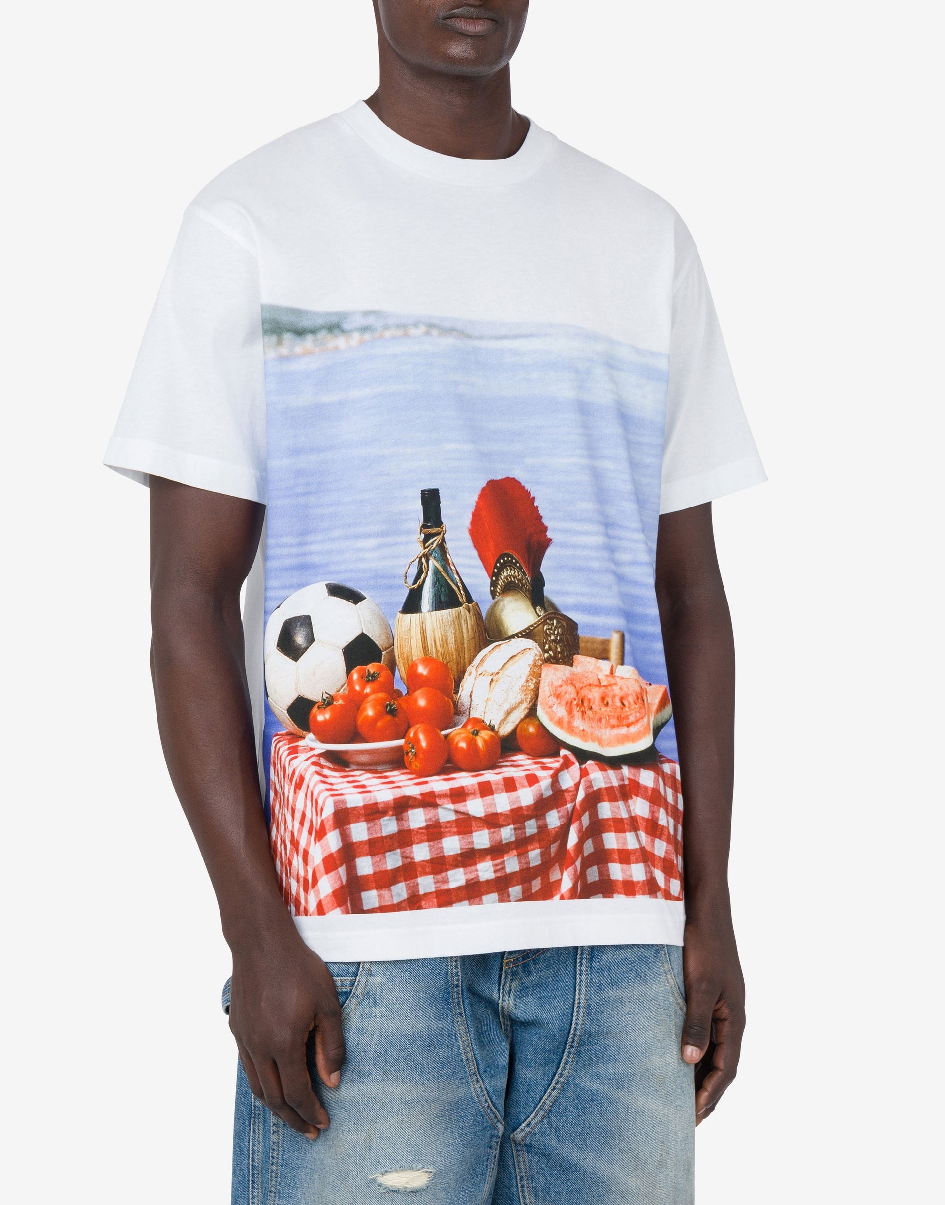 ORGANIC COTTON JERSEY T-SHIRT WITH ITALY-INSPIRED PRINT. PRODUCT DETAILS REGULAR FIT - PLACED PRINT - LOGO PRINT ON THE BACK - SHORT SLEEVES FABRIC: 100% COTTON SKU: AEF251ZZA070202411001 FITTING & DIMENSIONS - MODEL HEIGHT: 185 CM - MODEL BUST: 103 CM - MODEL WAIST: 84 CM - MODEL HIPS: 104 CM - MODEL SIZE: 48