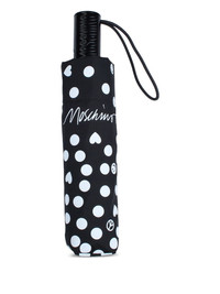 polka dot compact umbrella Highlights - Black - White polka dots - Heart and peace symbols - Automatic open and close mechanism - Signature logo detailing - Matching storage sleeve Made in Italy Composition Polyester 100%