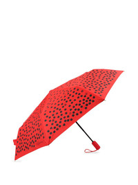 THIS BRIGHT RED POLKA DOT UMBRELLA FEATURES A COMPACT DESIGN WITH A MATCHING SLEEVE AND WRIST STRAP FOR EASY TRANSPORT. THE LOGO DETAILING ADDS A TOUCH OF SOPHISTICATION, MAKING IT PERFECT FOR BOTH RAINY AND SUNNY DAYS. STAY STYLISH AND PROTECTED WITH THIS MUST-HAVE ACCESSORY.