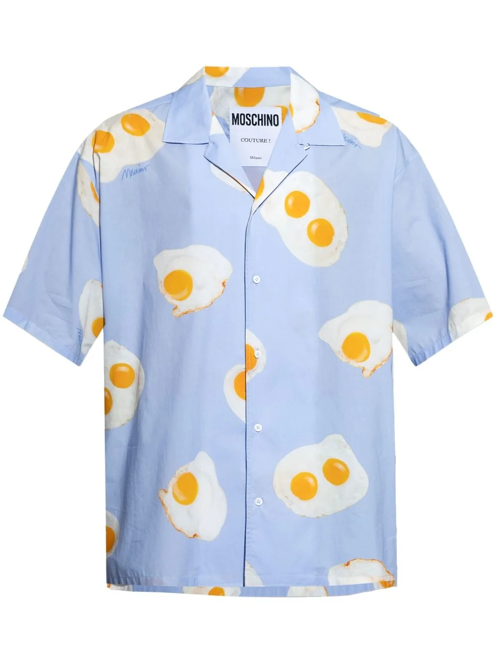 graphic-print shirt Highlights - Sky blue - Front button fastening - Camp collar - Drop shoulder - Short sleeves Made in Italy Composition Cotton 100%