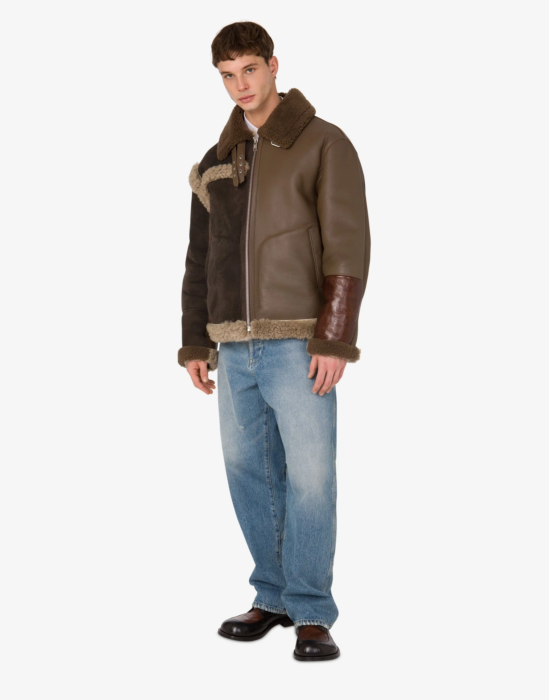 THE FALL/WINTER 2025 COLLECTION FEATURES SHEARLING-BLEND SHEARLING WITH A PATCHWORK EFFECT. PRODUCT DETAILS REGULAR FIT - COLLAR WITH ADJUSTABLE STRAP - TWO SIDE POCKETS - ZIP FRONT CLOSURE FABRIC: 100% SHEEPSKIN SKU: AEF252ZZA390252721888