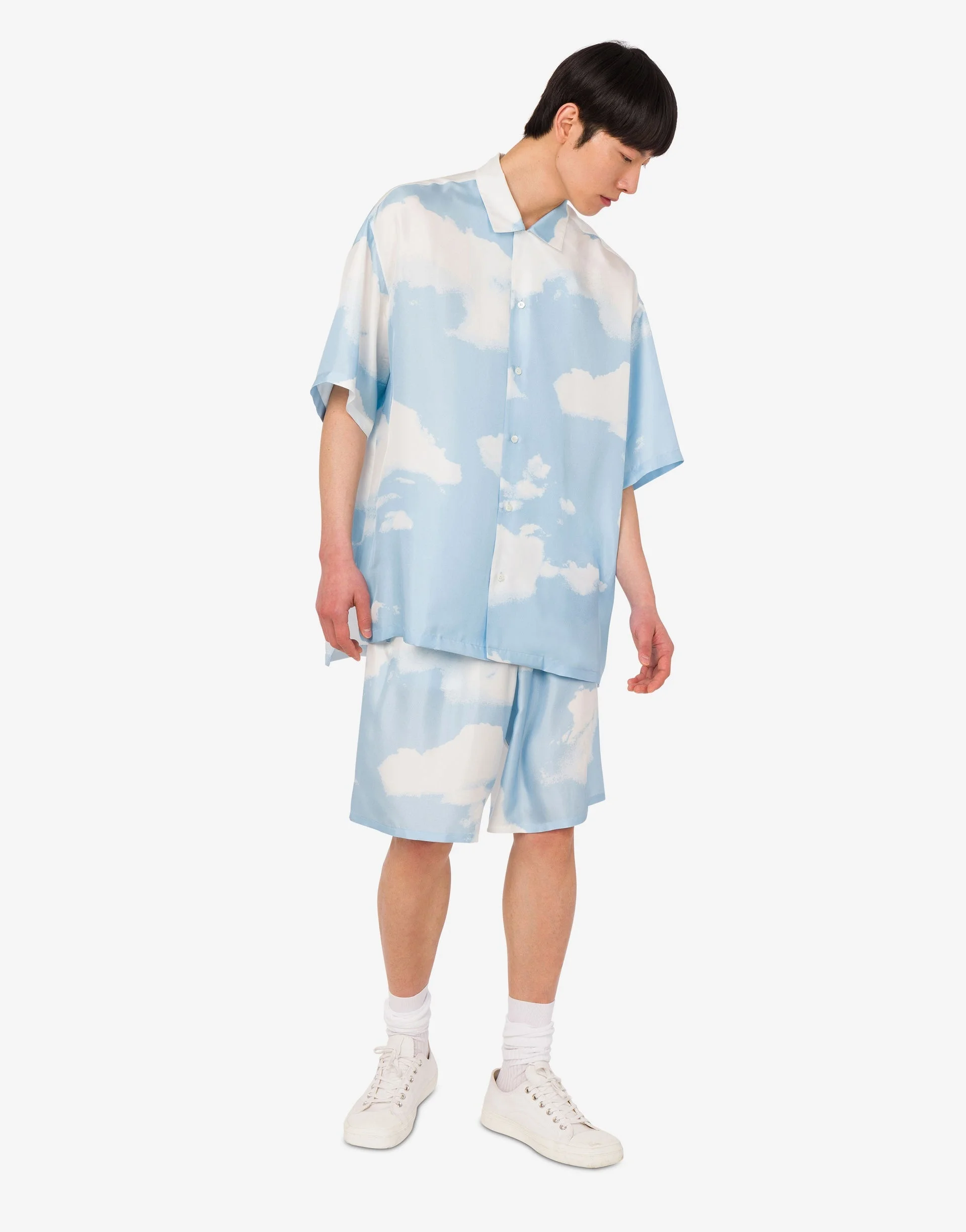 THE FALL/WINTER 2025 COLLECTION FEATURES SILK TWILL BERMUDA SHORTS WITH AN ALL OVER ARCHIVAL CLOUD PRINT. PRODUCT DETAILS RELAXED FIT - TWO SIDE POCKETS - BACK POCKET - ELASTIC WAISTBAND FABRIC: 100% SILK SKU: AEF252ZZJ035252511293 FITTING & DIMENSIONS - MODEL HEIGHT: 188 CM - MODEL BUST: 92 CM - MODEL WAIST: 73 CM - MODEL HIPS: 92 CM - MODEL SIZE: 40