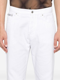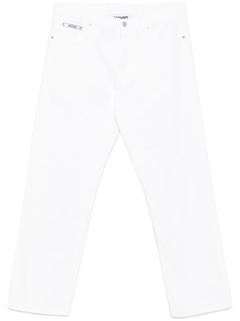 straight-leg jeans Highlights - White - Front button fastening - Belt loops - Classic five pockets - Embroidered logo to the front Made in Italy Composition Cotton 100% SIZE & FIT Model measurements Height 6 ft 2 in(1.87 m) Bust/Chest 38.97 in(99 cm) Hips 37.99 in(96.5 cm) Waist 29.52 in(75 cm) FittingInformation Designed with a straight leg, these jeans allow for an unrestricted and comfortable fit over the leg Sturdy and hard-wearing, this denim piece offers no stretch