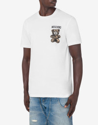 T-SHIRT IN ORGANIC COTTON JERSEY WITH LOGO PRINT AND SMALL MOSCHINO TEDDY BEAR ON THE FRONT. PRODUCT DETAILS REGULAR FIT - SHORT SLEEVES FABRIC: 100% COTTON SKU: AEF251ZZV071102411001 FITTING & DIMENSIONS - MODEL HEIGHT: 185 CM - MODEL BUST: 103 CM - MODEL WAIST: 84 CM - MODEL HIPS: 104 CM - MODEL SIZE: 48