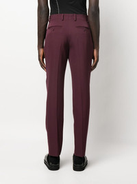 tailored virgin-wool trousers Highlights - Plum purple - Virgin wool - Pleat detailing - Concealed front button fastening - Belt loops - Slim cut - Tapered leg - Two side slash pockets - Rear button-fastening jetted pocket Made in Italy Composition Outer: Virgin Wool 100% Lining: Viscose 100% SIZE & FIT Model measurements Height 6 ft 2 in(1.87 m) Bust/Chest 36.41 in(92.5 cm) Hips 37 in(94 cm) Waist 29.52 in(75 cm) FittingInformation Designed for a slim fit, offering a comfortable fit that sits just away from the leg Made from a midweight non-stretch fabric This piece fits true to size – take your usual size Washing instructions Dry Clean Only