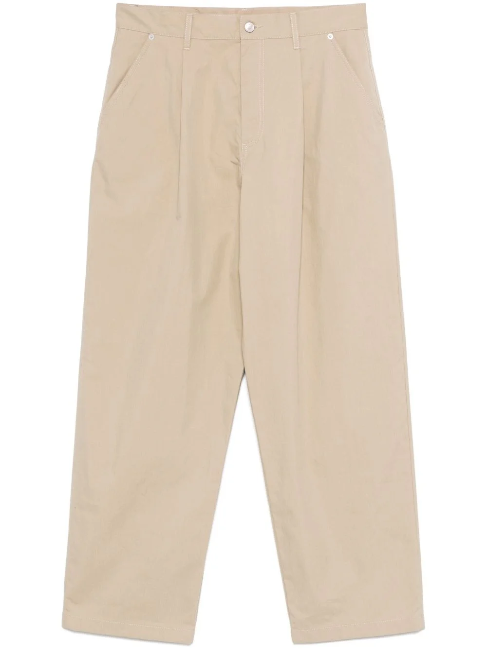 tapered trousers Highlights - Beige - Front button and zip fastening - Belt loops - Two side slash pockets - Two rear patch pockets Made in Italy Composition Cotton 75%, Polyamide 25% SIZE & FIT Model measurements Height 6 ft 2 in(1.88 m) Bust/Chest 36.61 in(93 cm) Hips 35.82 in(91 cm) Waist 27.95 in(71 cm) FittingInformation Designed for a tapered leg, offering a loose unrestricted fit over the leg with a closer fit towards the ankle Made from a lightweight non-stretch fabric