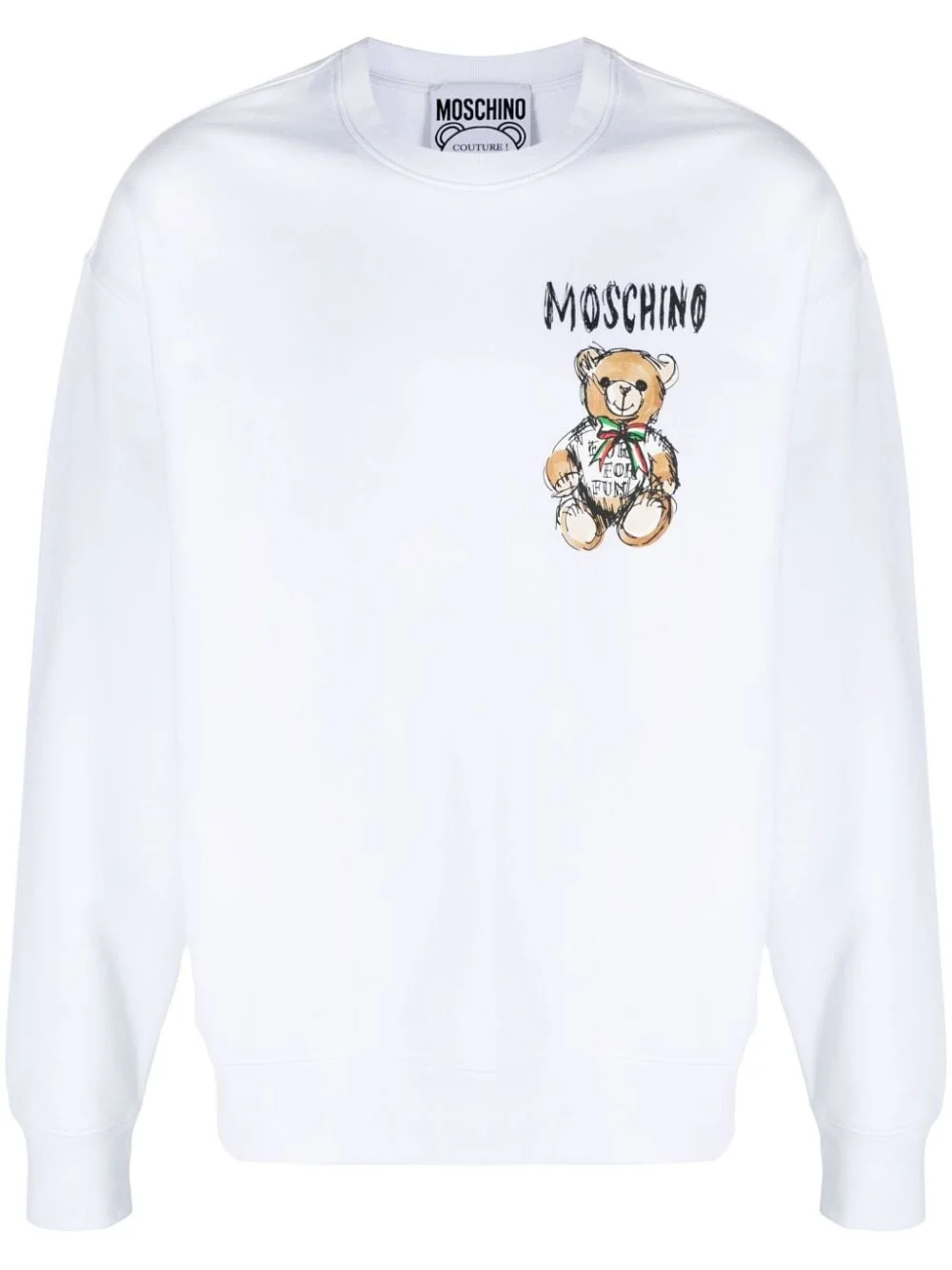 Teddy Bear-print cotton sweatshirt Highlights - White/multicolour - Cotton - Jersey texture - Signature teddy bear motif - Logo print to the front - Crew neck - Long sleeves - Ribbed cuffs and hem - Straight hem - French terry lining Imported Composition Cotton 100% SIZE & FIT Model measurements Height 6 ft 2 in(1.88 m) Bust/Chest 36.61 in(93 cm) Hips 35.82 in(91 cm) Waist 27.95 in(71 cm) FittingInformation Designed to be unstructured, offering a loose fit throughout Made from a midweight non-stretch fabric, this piece offers minimal elasticity when worn This piece fits true to size – take your usual size Washing instructions Hand Wash