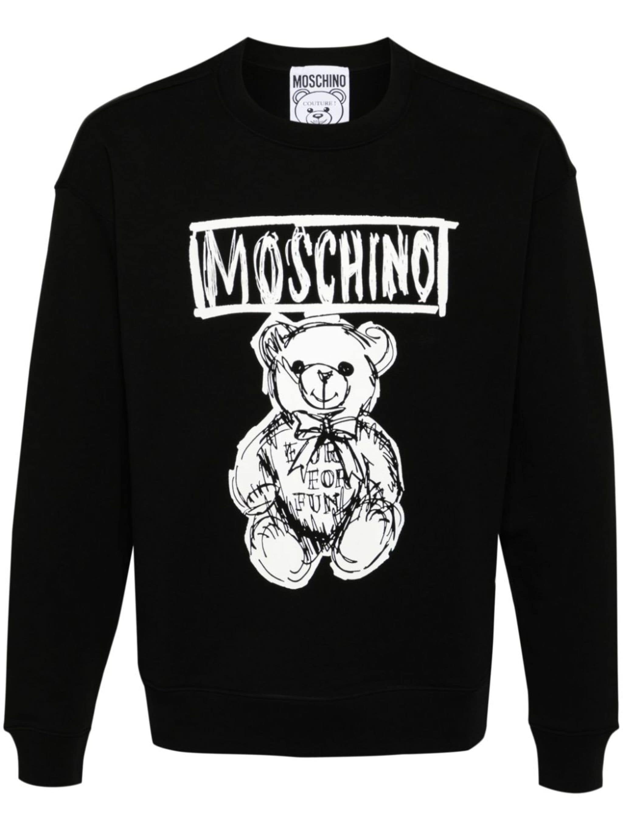 black cotton jersey texture logo print to the front signature Teddy Bear motif crew neck long sleeves ribbed cuffs and hem straight hem Size & Fit Model Measurements: Height: 1.86 m Bust/Chest: 95.0 cm Hips: 92.0 cm Waist: 75.0 cm Model wears size M Fabric and Care Designer Style ID: 242ZRV17277028 Designer Colour: 1555 - Nero Composition: Cotton 100% Washing instructions: Hand Wash Made in Portugal