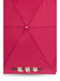 THIS COMPACT UMBRELLA FEATURES A CHARMING RASPBERRY PINK/BLACK/BROWN LOGO PRINT WITH A PLAYFUL TEDDY BEAR DESIGN. ITS SIX-PANEL CONSTRUCTION AND EXTENDABLE HANDLE MAKE IT BOTH STURDY AND EASY TO USE. PLUS, THE INCLUDED WRIST STRAP ENSURES YOU WON'T LOSE IT IN A SUDDEN DOWNPOUR. STAY STYLISH AND DRY WITH THIS MUST-HAVE ACCESSORY.