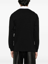 logo-embroidered polo shirt Highlights - Black - Front button placket - Polo collar - Long sleeves - Short side slits Imported Composition Cotton 100% SIZE & FIT Model measurements Height 6 ft 2 in(1.88 m) Bust/Chest 36.61 in(93 cm) Hips 36.61 in(93 cm) Waist 29.92 in(76 cm) FittingInformation Designed for a regular fit, this polo shirt offers a comfortable loose fit throughout the body Made from a midweight non-stretch fabric, this piece offers minimal elasticity when worn