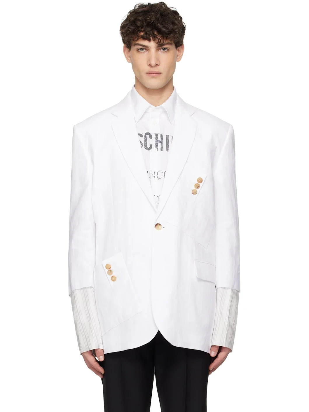 Plain-woven linen blazer. · Layered construction · Notched lapel · Button closure · Flap pocket and patch pockets · Raw edge at sleeves · Stripes at cuffs · Central vent at back hem · Welt pockets at interior Supplier color: Multi white Body: 100% linen. Lining 1: 100% cotton. Lining 2: 51% acetate, 49% viscose. Made in Italy 251720M195000