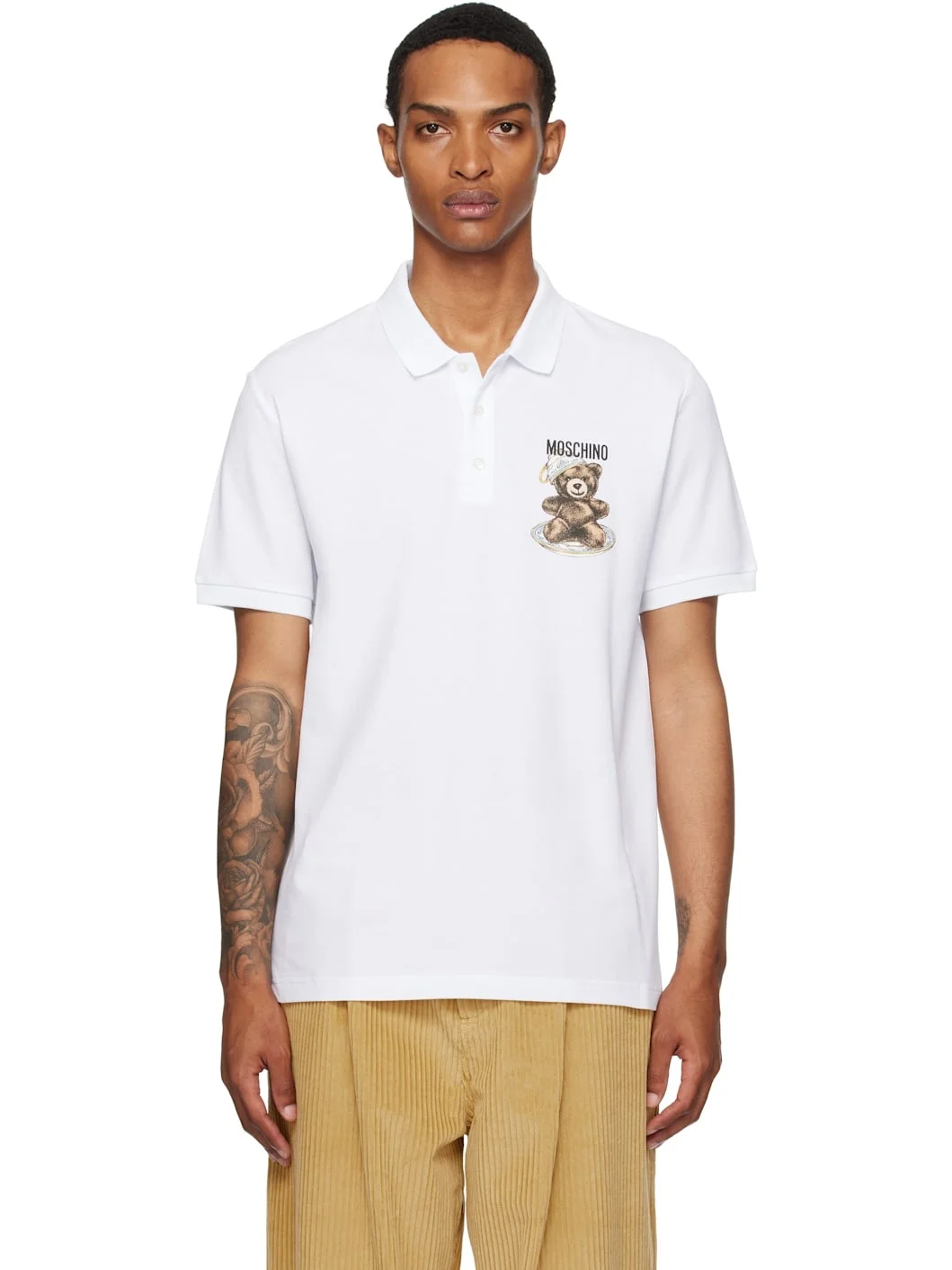 Cotton pique polo. · Rib-knit spread collar and cuffs · Button closure · Graphic and logo printed at chest · Tennis-tail hem Supplier color: Multi White 100% cotton. Made in Portugal 252720M212002