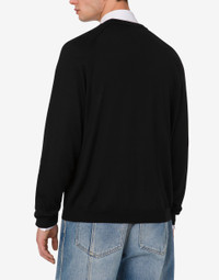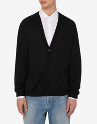 FINE WOOL AND SILK CARDIGAN WITH MINI MOSCHINO M IN GOLD GALVANIC. PRODUCT DETAILS - METAL LETTER M - V-NECK - TWO FRONT POCKETS - FRONT BUTTON CLOSURE FABRIC: 70% PURE WOOL, 30% SILK SKU: AEF251ZZJ090502010555 FITTING & DIMENSIONS - MODEL HEIGHT: 185 CM - MODEL BUST: 103 CM - MODEL WAIST: 84 CM - MODEL HIPS: 104 CM - MODEL SIZE: 48