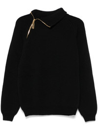 asymmetric-neck sweater Highlights - Black - Virgin wool - Ribbed knit - Asymmetric neck - Off-centre front zip fastening - Branded zip puller - Long raglan sleeves - Rear intarsia-knit logo - Straight hem Made in Italy Composition Virgin Wool 100%