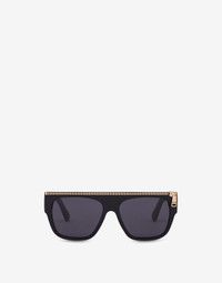 SUNGLASSES WITH BLACK GRILAMID FRAME WITH DECORATIVE ZIP ON THE FRONT AND GOLD-PLATED LOGO ON THE TEMPLES. METAL DECORATIVE ZIP GREY LENSES FRAME: 50% ACETATE, 50% PJM, 50% POLYAMIDE, 50% SHEEPSKIN, 50% TE CODE: SAFMOS165S56IR807