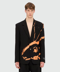 Black single-breasted jacket in cool wool with "Sketched Bunnies" print