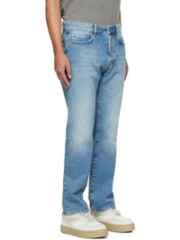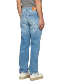 Non-stretch denim jeans. Fading and distressing throughout. · Belt loops · Five-pocket styling · Button-fly · Logo-engraved silver-tone hardware · Contrast stitching in tan Supplier color: Medium blue Body: 100% cotton. Lining: 65% polyester, 35% cotton. Made in Italy 222443M191024