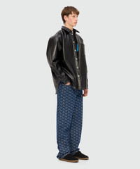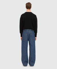 Five-pocket blue laser-cut denim trousers with an all-over "TheMwave" motif. Mid-rise waist with belt loops, front closure with logo button and zip. Contrasting MSGM patch on the back pocket. Contrast stitching. Oversized fit. The model is wearing size M/48. CODE: 3940MP238X-257591-88 Details and fit - 100% CO