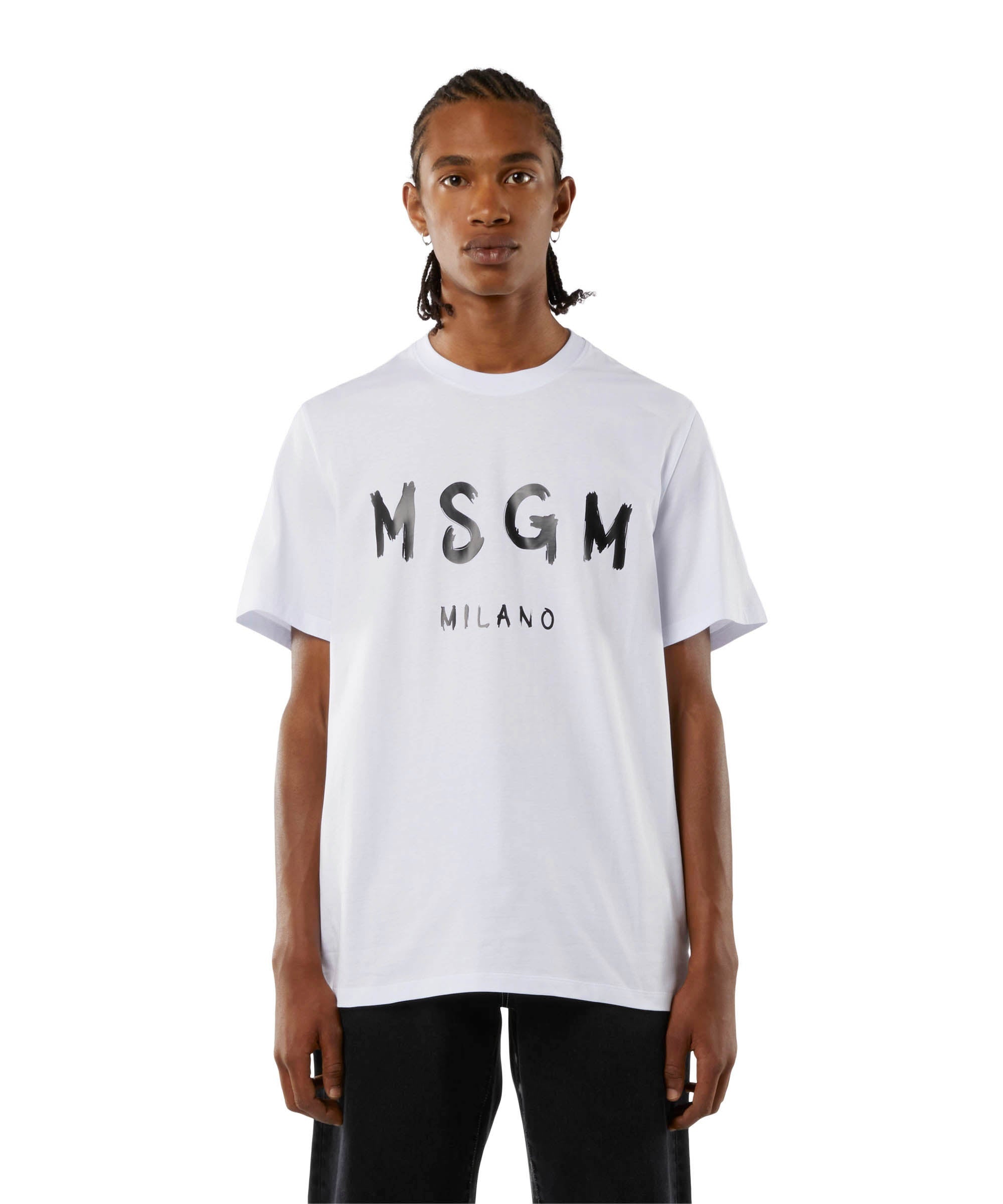 Crew neck cotton T-shirt in solid colour with short sleeves. The T-shirt is decorated with the MSGM logo brushed on the front. The fit is regular. The model (male) is wearing a size M / 48 (Height : 188 cm. - Chest : 91 cm. - Waist : 73 cm. - Hips : 94 cm.) CODE: 2000MM510-200002-01 Details and fit - 100% CO - The model (male) is wearing a size M / 48 (Height : 188 cm - Chest : 91 cm - Waist : 73 cm - Hips : 94 cm) - For information about a product, care and materials, please call us at +39 02 9475 5343 or contact us through Chat. You can also get help by filling out the form in the Help section.