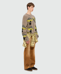 Brushed mohair crewneck sweater with a "Fantastic Mushroom" jacquard pattern. Ribbed collar, cuffs, and hem. Oversized fit. The model is wearing size M/48. CODE: 3940MM200-257599-96 Details and fit - 38% PC / 32% PA / 30