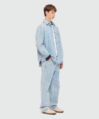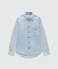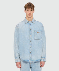 Light denim shirt with a marbled effect, featuring a classic collar, front button closure, and chest pocket with embroidered MSGM logo. Logo tag on the back. Buttoned cuffs. Rounded hem. Regular fit. The model is wearing a size 41. CODE: 3940ME232L-257592-84 Details and fit - 100% CO