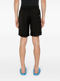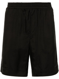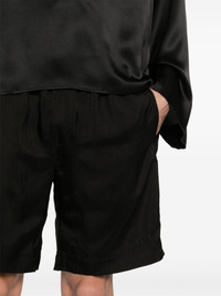 logo-embroidered satin shorts Highlights - Black - Satin weave - Elasticated waistband with internal drawstring - Two side inset pockets - Embroidered logo to the front - Rear patch pocket Made in Italy Composition Cupro 100% SIZE & FIT Model measurements Height 6 ft 1 in(1.85 m) Bust/Chest 35.82 in(91 cm) Hips 37.79 in(96 cm) Waist 29.13 in(74 cm) FittingInformation Designed for a straight-leg fit, offering an unrestricted and comfortable fit over the leg Adjust this piece’s waistband to your preference using the drawstring Made from a lightweight non-stretch fabric This piece fits true to size – take your usual size