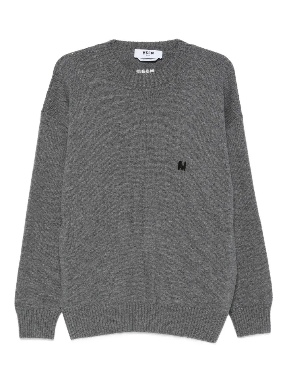 logo-embroidered wool sweater Highlights - Grey - Wool - Crew neck - Long sleeves - Embroidered logo Made in Italy Composition Merino 90%, Cashmere 10% Washing instructions Dry Clean Only