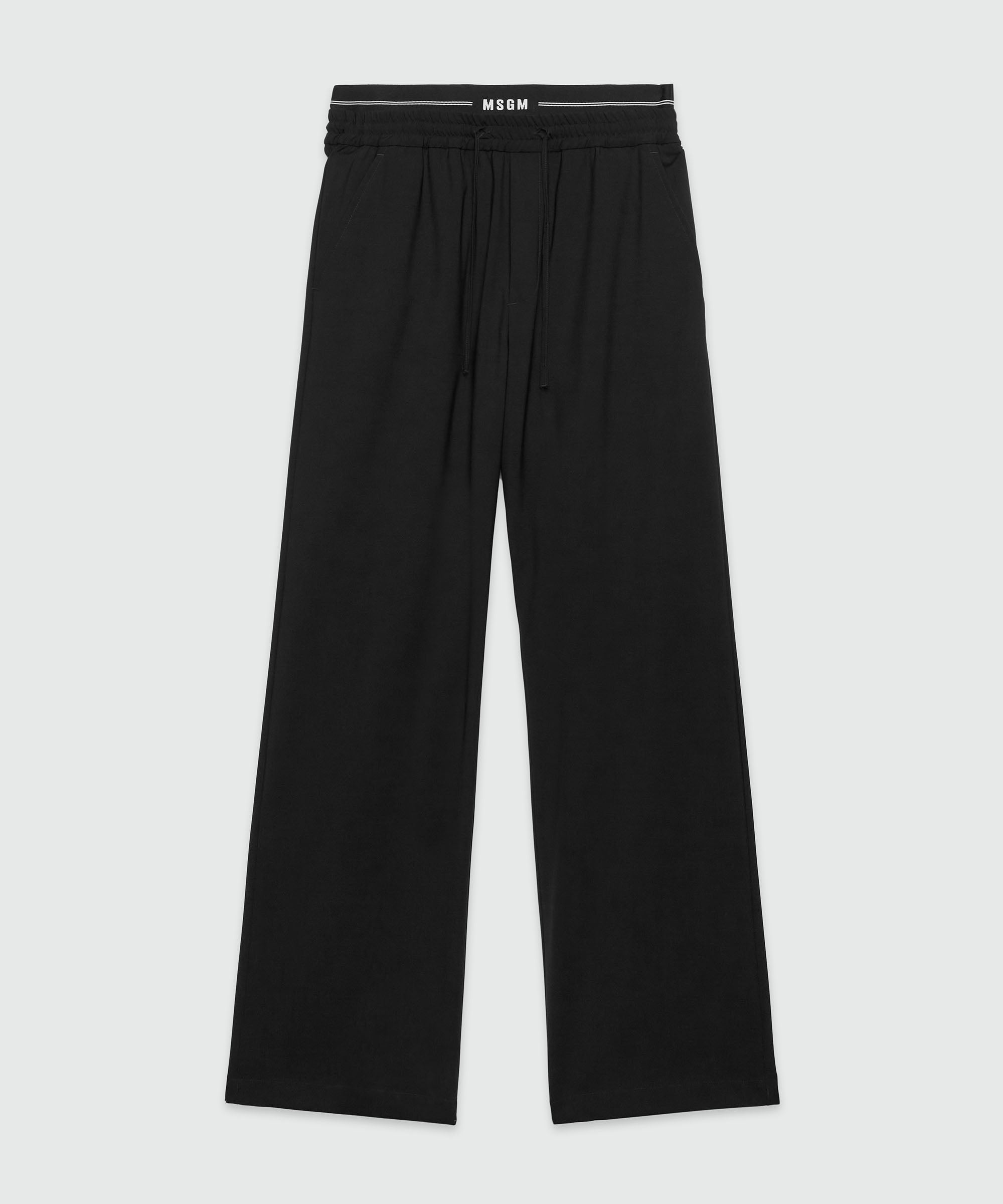 Black virgin wool pants with elastic logo