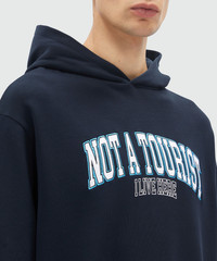Solid color cotton jersey hoodie with MSGM quotes "NOT A TOURIST/ I LIVE HERE". Ribbed cuffs and bottom. Regular fit. The model wears size M/48. CODE: 3840MM116-257095-89 Details and fit - 100% CO