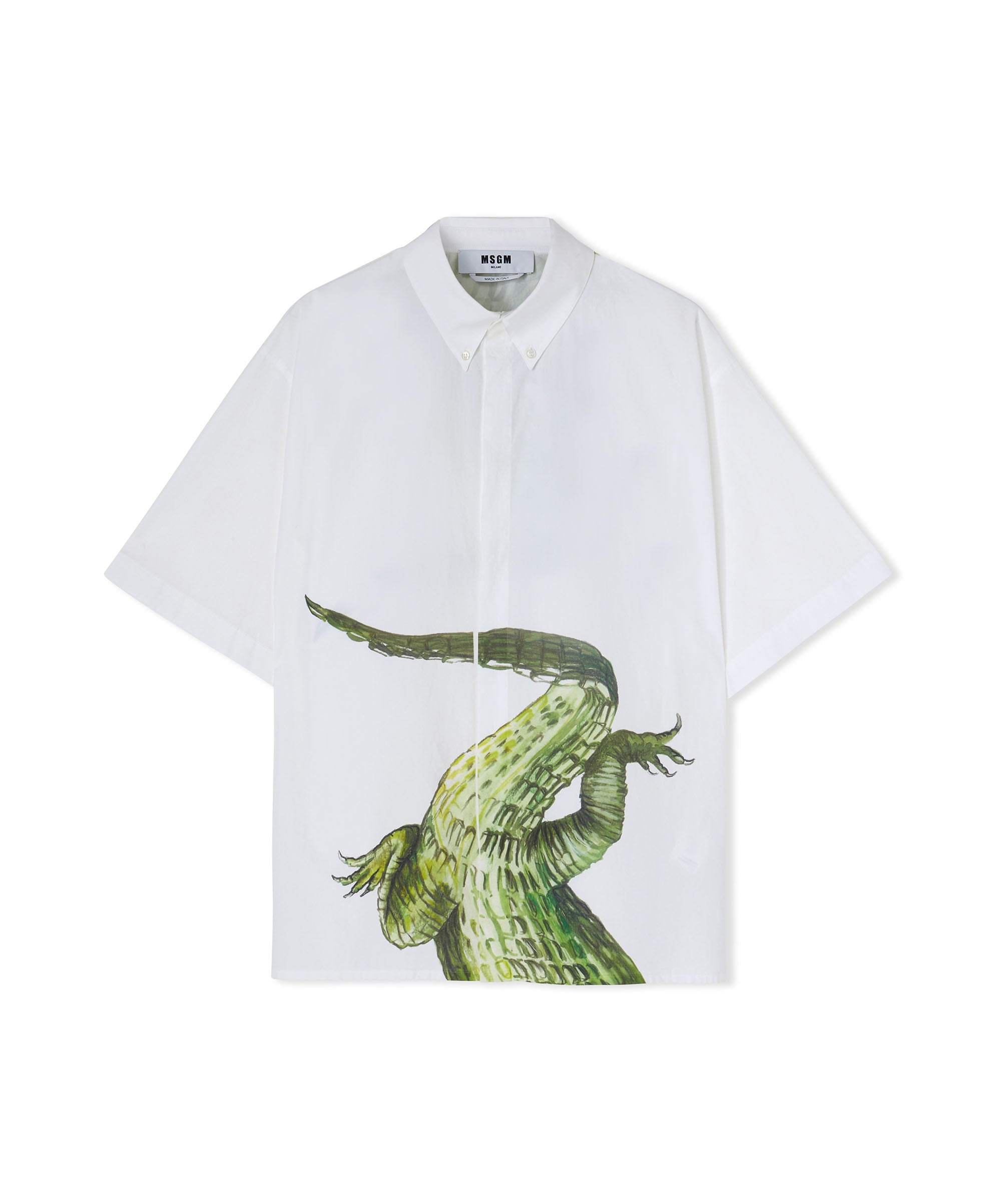 Organic poplin cotton shirt with "crocodile" print on front and back. Classic collar, front closure with buttons and straight bottom. Label with logo placed on the back of the collar. Regular fit. The model (male) is wearing a size 41 (Height : 188 cm - Chest : 91 cm - Waist : 73 cm - Hips : 94 cm) CODE: 3440ME23X-237008-01 Details and fit - 100% COO - The model (male) is wearing a size 41 (Height : 188 cm - Chest : 91 cm - Waist : 73 cm - Hips : 94 cm) - For information about a product, care and materials, please call us at +39 02 9475 5343 or contact us through Chat. You can also get help by filling out the form in the Help section.