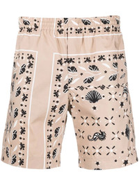 paisley print shorts beige/white cotton paisley print elasticated waistband two side slit pockets Made in Italy Composition Cotton 100% SIZE & FIT Model measurements Height 6 ft 1 in(1.85 m) Bust/Chest 33.46 in(85 cm) Hips 38.18 in(97 cm) Waist 31.49 in(80 cm) FittingInformation This piece fits true to size. We recommend you get your regular size Designed for a slim fit at the waist and loose over the leg Made with a mid-weight non-stretch fabric Washing instructions Hand Wash