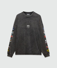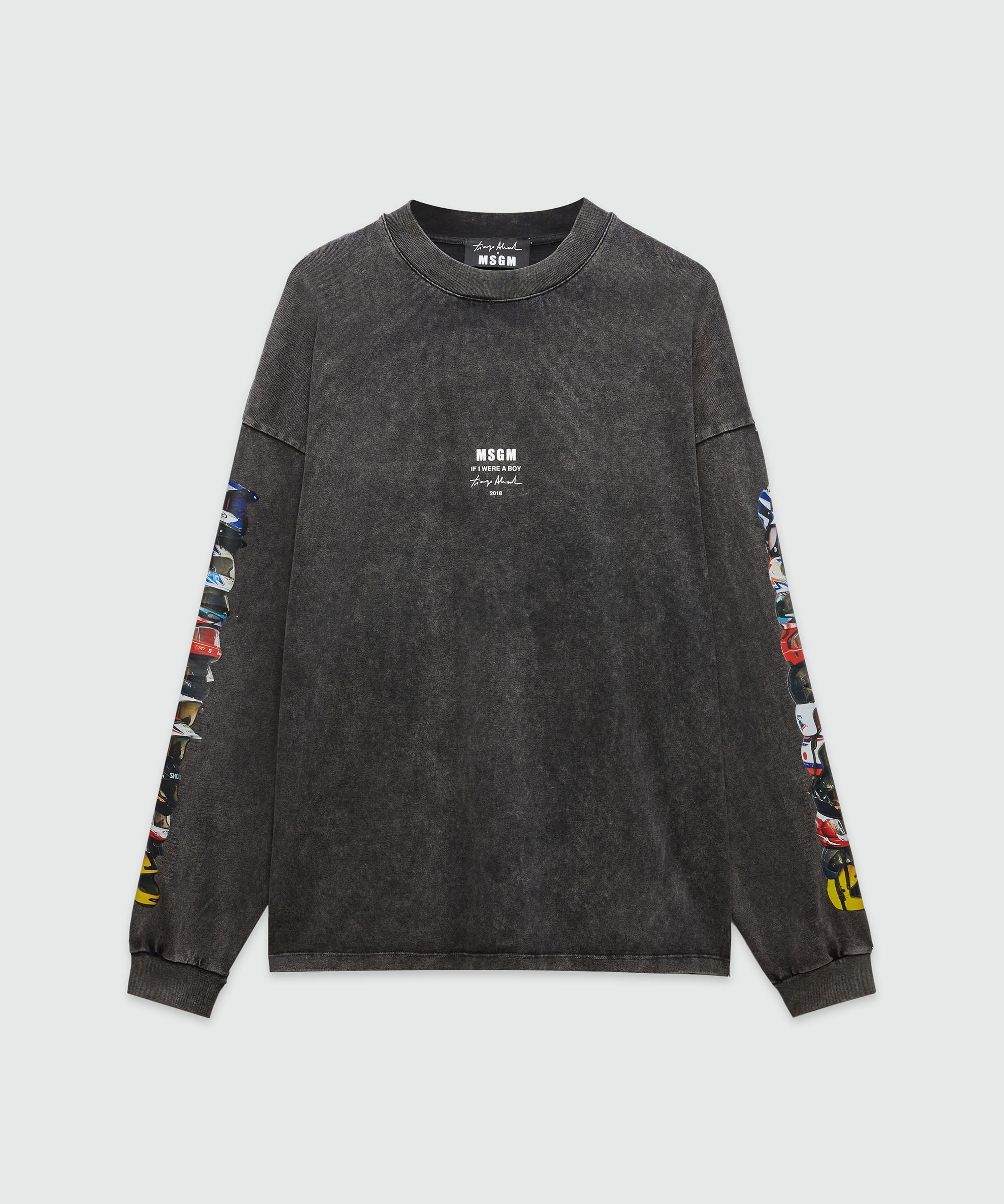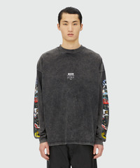 MSGM reinterprets the theme of speed and the importance of time which flows inexorably, incorporating the works of the Portuguese artist Tiago Alexandre in its graphics. Solid color cotton crewneck T-shirt subjected to a used treatment with graphic from the "If I were a boy" collection. Ribbed collar and cuffs, long sleeves. Oversize fit. CODE: 3740MM138-247583-98 Details and fit - 100% CO - For information about a product, care and materials, please call us at +39 02 9475 5343 or contact us through Chat. You can also get help by filling out the form in the Help section.