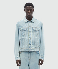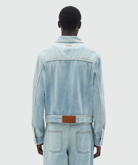 Faded effect cotton denim jacket with profiles decorated with piping in contrasting color and texture. Classic collar and front closure with metal buttons. Flap pockets on the chest and welt pockets on the sides. Long sleeves with button on the cuff. MSGM logo and tobacco stitching. Regular fit. The model wears size M/48. CODE: 3840MH233-257089-84 Details and fit - 100% CO