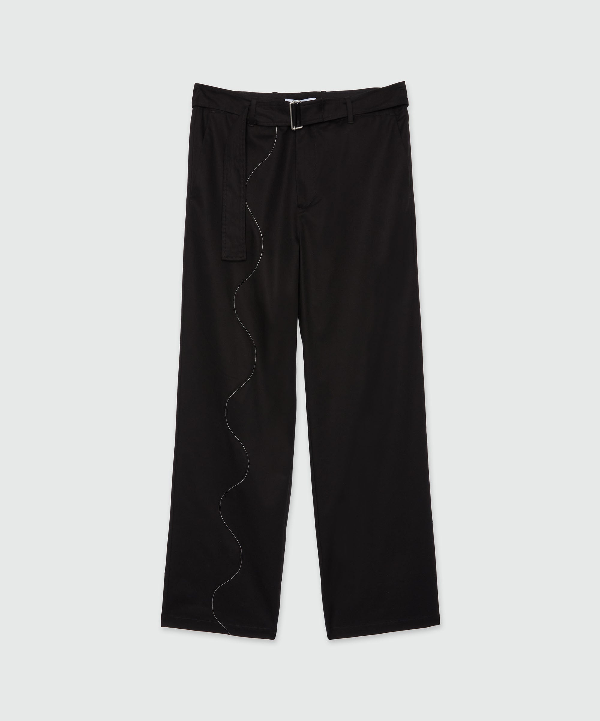 Cotton gabardine trousers with Wave embroidery in contrasting colour. Matching belt at the waist. Side pockets and welt pockets on the back. Regular fit. The model wears size M/48. CODE: 3840MP18X-257133-99 Details and fit - 97% CO / 3% EA