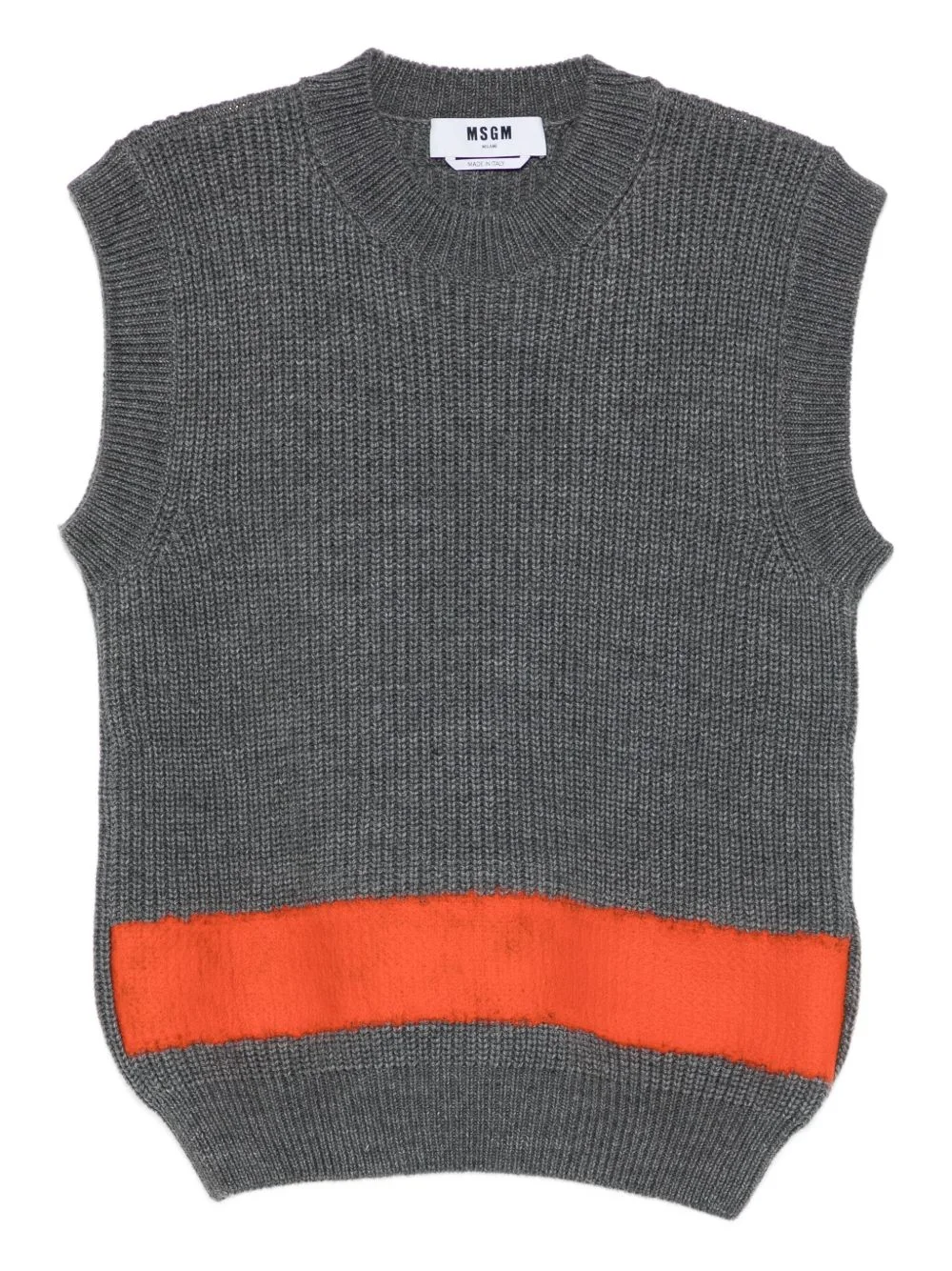 stripe-detail vest Highlights - Grey - Horizontal stripe detail - Sleeveless - Round neck - Knitted construction Imported Composition Cotton 100% Washing instructions Read Manufacturer Guidelines