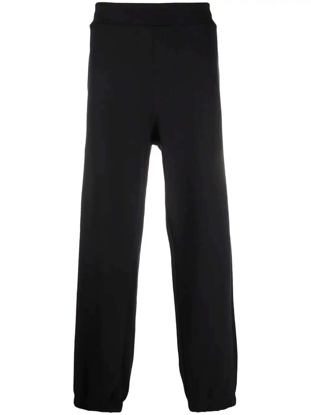 wide-leg track pants black cotton rear patch pocket two side inset pockets elasticated waistband wide leg elasticated ankles long length Made in Italy Composition Cotton 100% SIZE & FIT Model measurements Height 6 ft 1 in(1.85 m) Bust/Chest 37.79 in(96 cm) Hips 37.4 in(95 cm) Waist 30.7 in(78 cm) FittingInformation This piece fits true to size. We recommend you get your regular size Designed to be loose over the leg with a fitted waist and hem Made with a mid-weight fabric Washing instructions Hand Wash