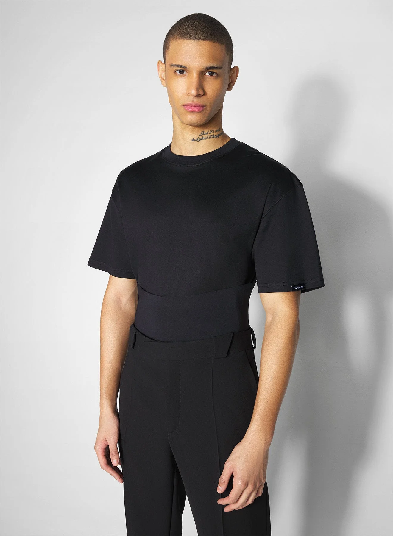- Fitted tshirt in soft jersey and stretch fabric - ribbed collar - wide Short sleeves - stretch Cinched waist DETAILS MAIN FABRIC:100% COTTON SECOND FABRIC:75% RECYCLE POLYAMIDE 25% ELASTANE made in PORTUGAL style: 25F3TS01196016