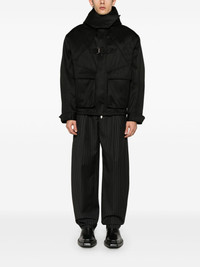 cargo jacket Highlights - Black - Concealed front zip fastening - Buckle-strap fastening - Detachable hood - Drawstring hem Imported Composition Outer: Cotton 100% Lining: Cotton 100% SIZE & FIT Model measurements Height 6 ft 2 in(1.87 m) Bust/Chest 36.41 in(92.5 cm) Hips 35.43 in(90 cm) Waist 29.52 in(75 cm) FittingInformation Designed to be unstructured, offering a loose fit throughout The internal shoulder pads offer a structured shape Made from a midweight non-stretch fabric